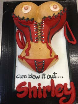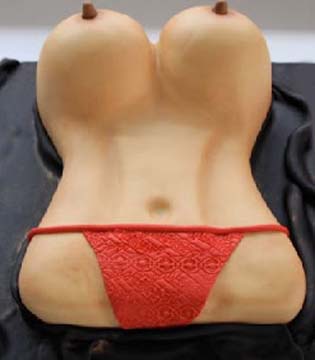 Bachelor Cakes, Female CakesTiny winey bikini red bikini big mama breast and lace female sex torso cakeErotic Baking USAFebruary 9, 2025