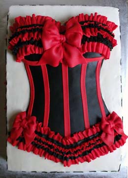 Bachelor Cakes, Female CakesRed and black ruffle corset and bow dress cake no bodyErotic Baking USAFebruary 9, 2025