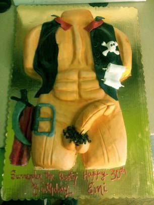 Bachelorette Cakes, Male CakesSwashbuckler Sinbad the naked sailor torso cake with his bootyErotic Baking USAFebruary 8, 2025