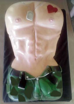 Bachelorette Cakes, Male Cakesarmy shorts dog tags erotic bulge in his paints and red heart torsoErotic Baking USAFebruary 8, 2025