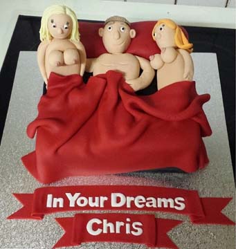 Bed Cakes, Mix Sex CakesSad sagging old sack chap with two sizzling chicks kissing his balls in sexy bed cakeErotic Baking USAFebruary 10, 2025