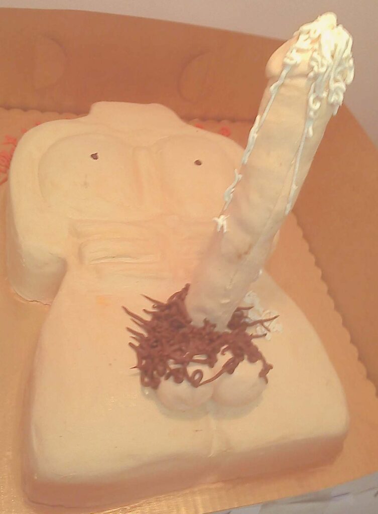 Your man stripping off his shirt and tie with his full-size dick hanging down on his chest cake